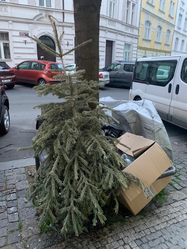 Nejdřív se objevila krabice s nějakým odpadem, po pár dnech velký igelitový pytel a dnes i stromek. :-(