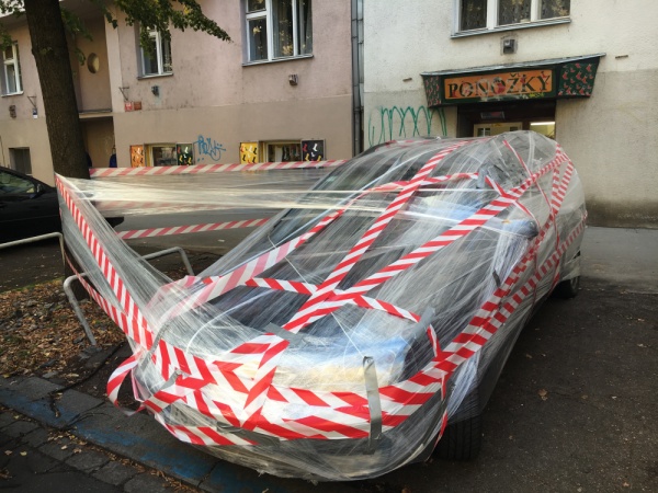 Dobrý den, včera tu někdo provedl na jednom autě takovou taškařici a obalil jej celé do folie. Auto následně odjelo a balicí materiál zůstal. Prosím ukliďte jej. Díky.