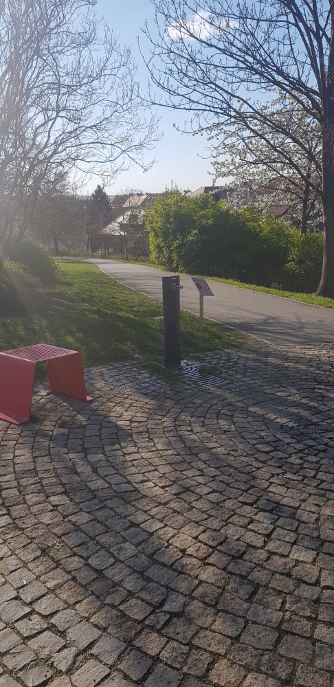 Zaseklý a protékající kohoutek na vodu v parku Židovské pece.