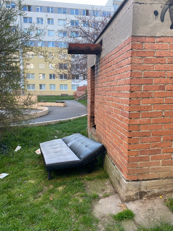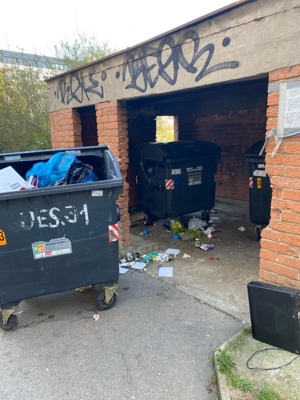 Dobrý den, před vchodem Jeseniova 33 u kontejneru se objevila pohovka a bezdomovci vycházeli odpad z kontejneru.