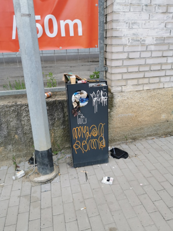 Na ulice Malešická pořád plně odpadkové koše.