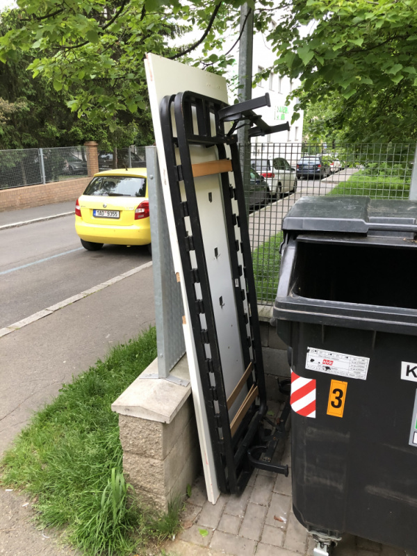 Dobrý den, kdosi si odložil dveře a zbytky roštu postele u popelnicového stání Luční 12 (kontejnerové stání pro dům Koněvova 2453,2454, 2455).