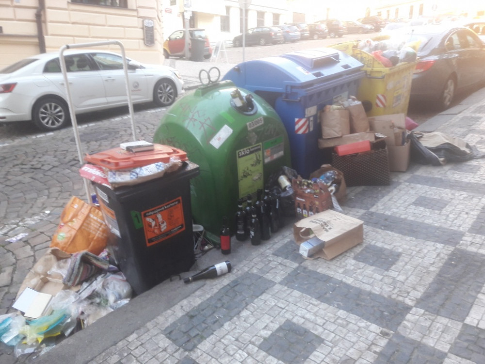 děkujeme za Váš podnět. Odpad kolem tříděných poklidí firma AVE po pravidelném vývozu nádob.