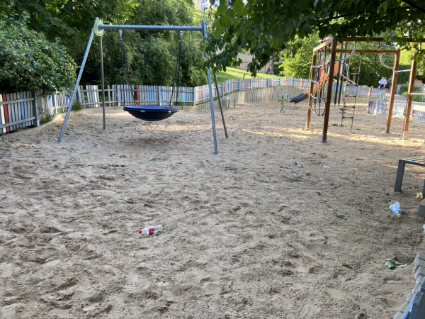 Dobry den, detske hriste za panelakem v Lupacove (za hotelem Olsanka) je plne odpadku, uvnitr i kolem. Navic je ponicena ohradka. Diky, JS