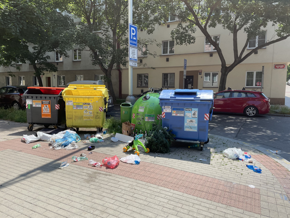 Nepořádek u popelnic ma tříděný odpad