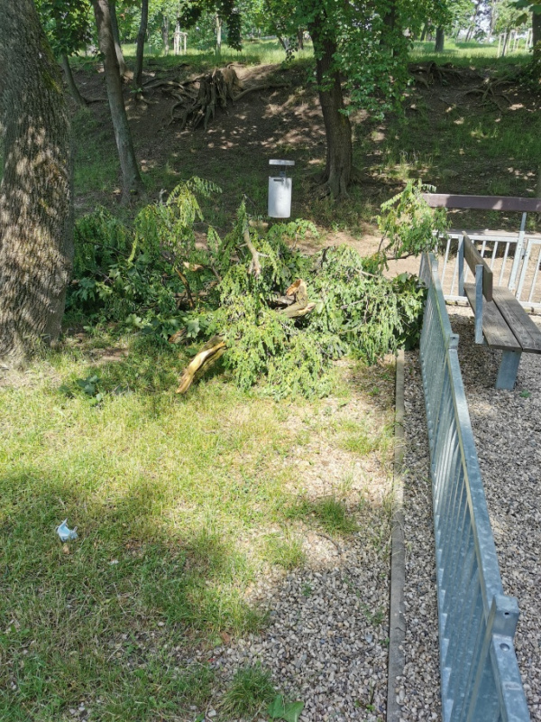 Popadane vetve ze stromu u detskeho hriste: Detske hriste Vrch sv. krize.