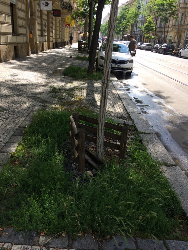 Korunní 77, rozlámaný ohradník kolem stromu