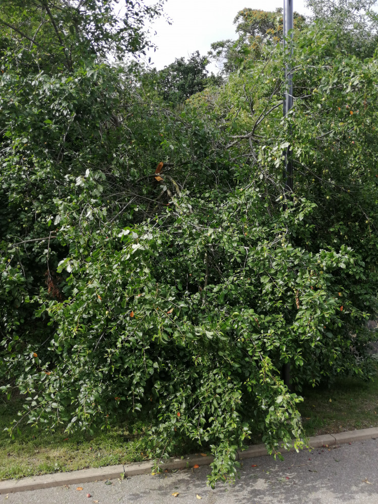 Zlomená větev (zřejmě vlivem bouřek) u cyklostezky.