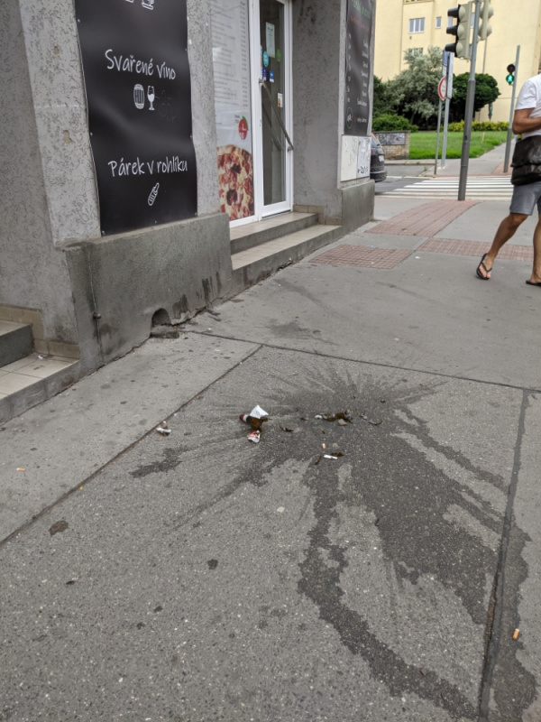 Rozbitá láhev na chodníku