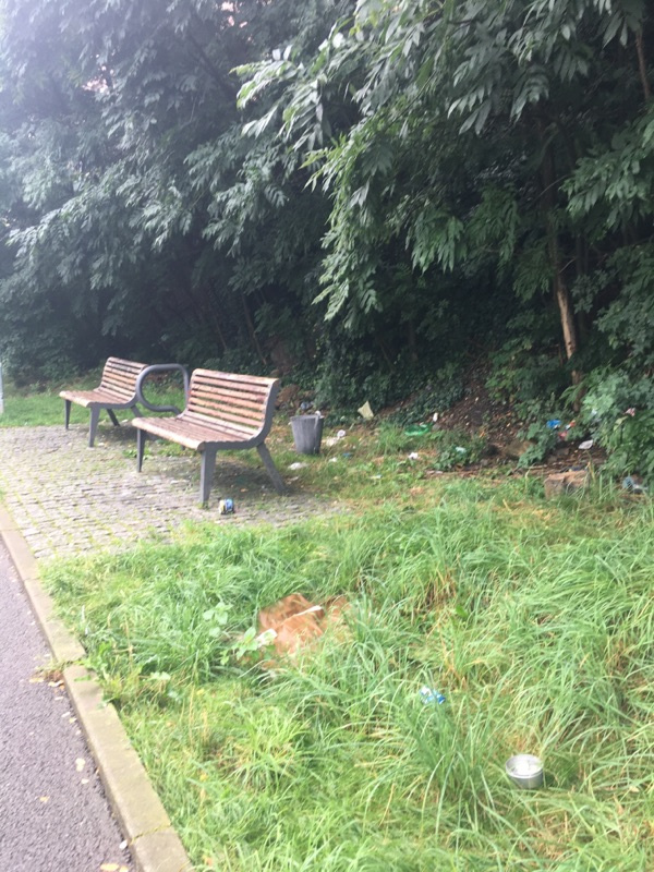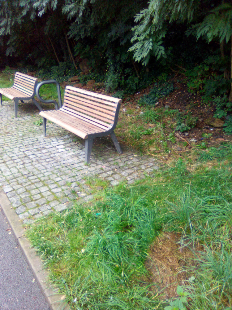 Nepořádek za lavičkami a okolí na cyklostezce směrem k nádraží. Děkujeme