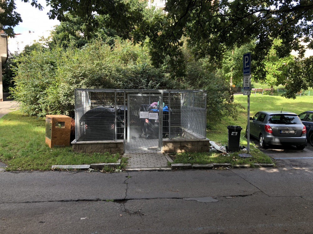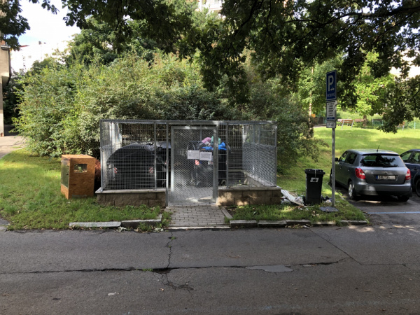 Odpadky a box u klecoveho stání Luční 13 / Luční 24