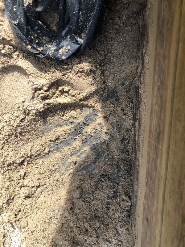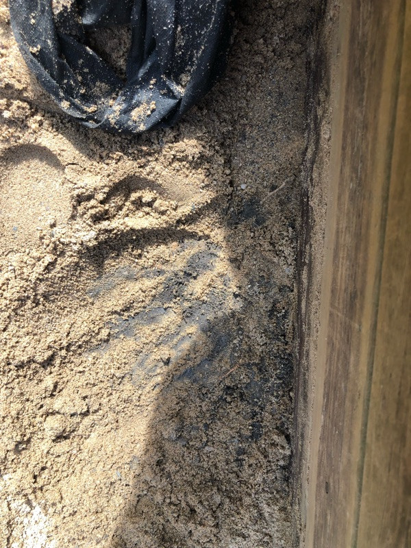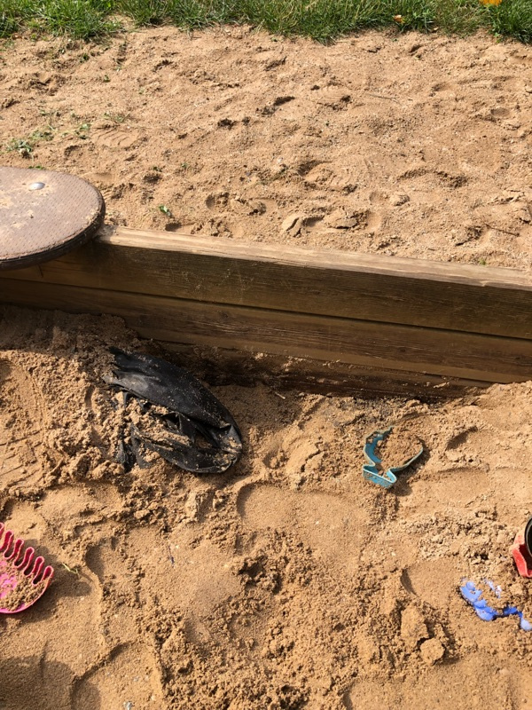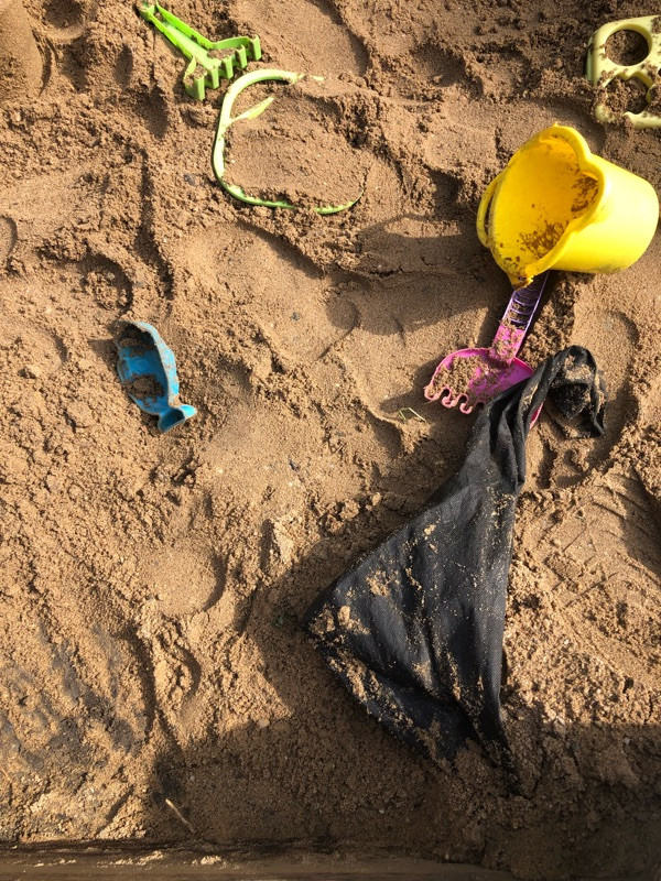 V pískovišti je protržená textilie oddělujíci písek od zeminy.