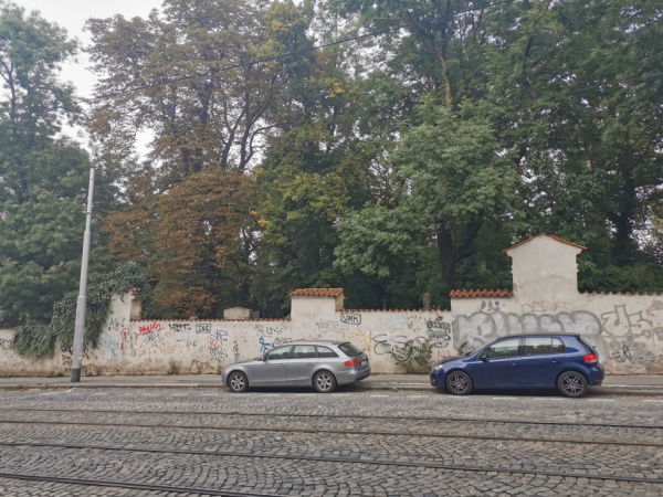 Zeď patří Správě hřbitovů, potažmo Hlavnímu městu Praha, které má své prostředky a programy na čištění graffiti...