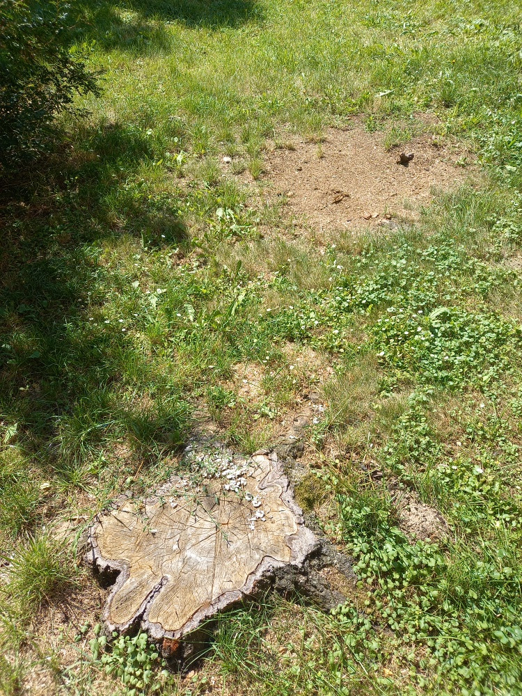 1.doslo na 4x k pokaceni dvou velkych stromu,ktere byly vedle sebe,ale pouze jeden pařez byl odstranen,druhy zde z neznameho duvodu zustal a vedle neho byl vysazen novy strom.