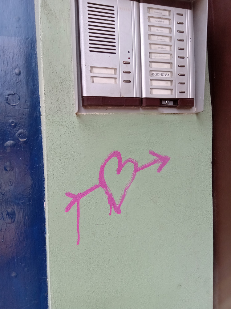 Grafitti na domě Husitská 76/27. Dum je v programu Antigraffitti. Děkujeme!