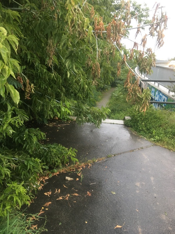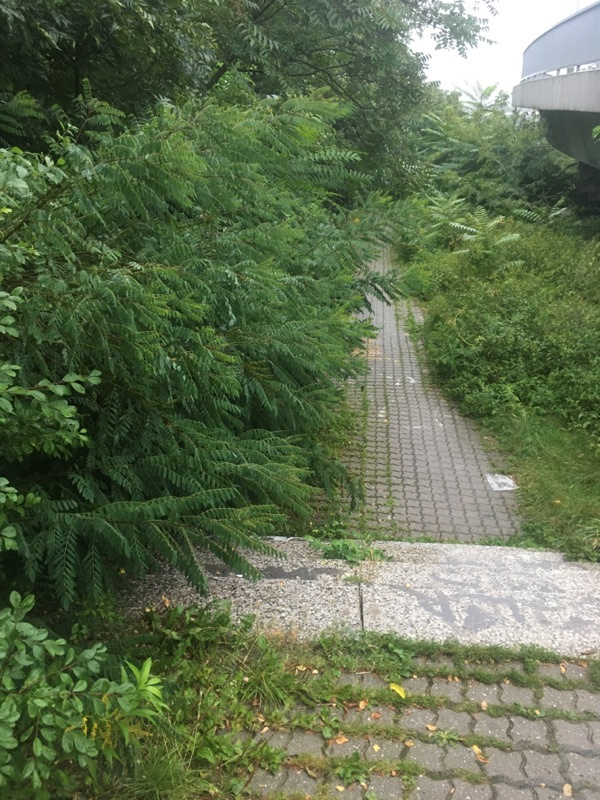 cesta bude casem kvuli stromum a kerum neprichodna.1,5m koprivy poprave strane po cele delce chodniku
