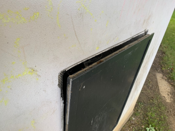 Vyvrácene dveře do horkovodu. Za domem Biskupcova 59. URGENT!!!