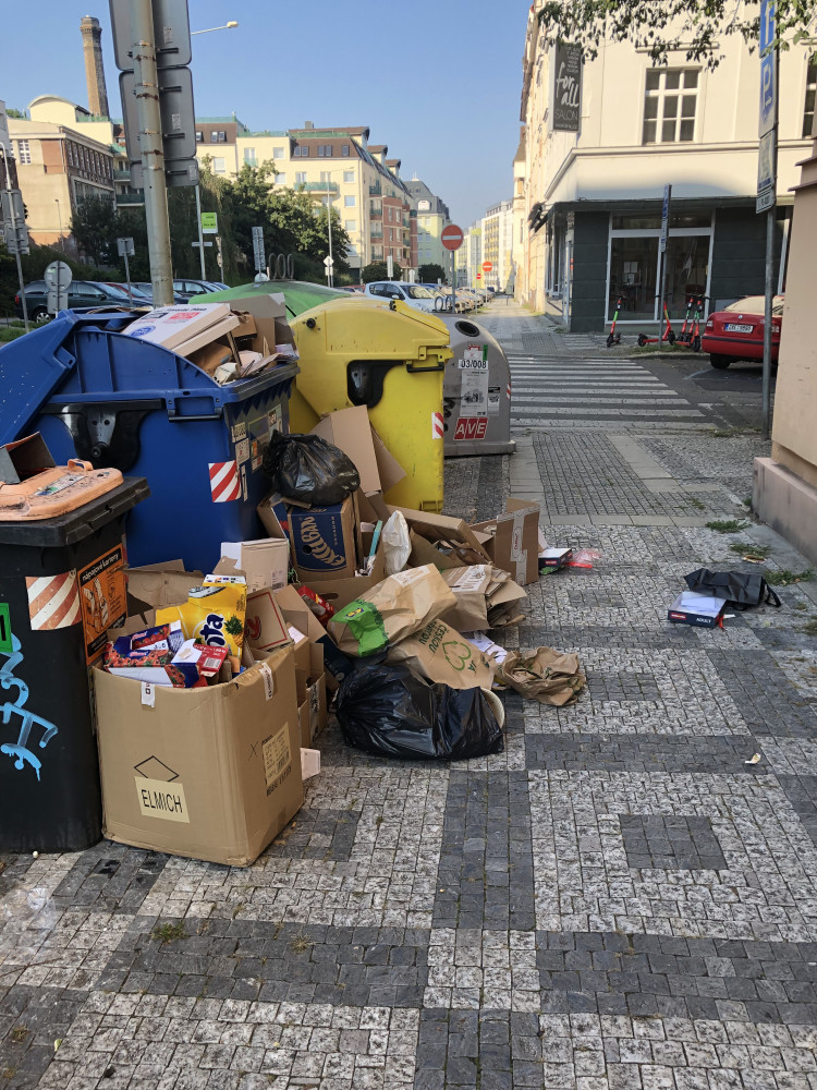 Dobrý den, prosím o úklid kolem tříděných popelnic na rohu Jeseniova a Domažlická.