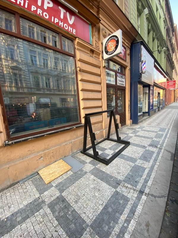 Zdravim, ano ten stojan, kazdopadne to vypada jako bordel a je tam nevim proc rozebrana dlazba. Tady si kazdej dela co chce, ten obchod asi nema zabor na chodnik, pujdu se tam zeptat. Kazdopadne diky.