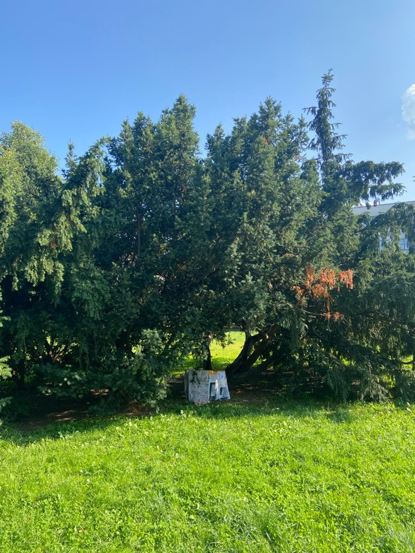 v parku na Náměstí Jiřího z Lobkovic je už delší dobu velká krabice pod keřem, který je přibližně uprostřed louky pro psy.