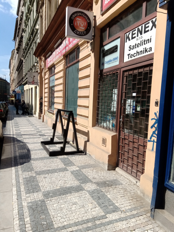 Kovová konstrukce překáží na chodníku již nekolik tydnů před domem Husitská 75/25. Pokud nejde o placený zábor chodníku, bylo by dobré ji odstranit, aby chodcům nepřekážela. Děkuji!