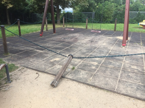 Vytrzeny sloupek na detskem hristi Na Balkane