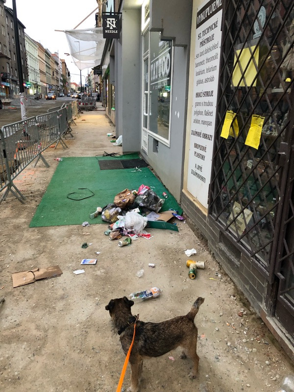 děkujeme za Váš podnět. Na uvedené místo se momentálně nedostaneme. Pokusíme se až bude vozovka opravena pokud tam nepořádek stále bude.