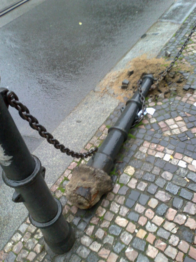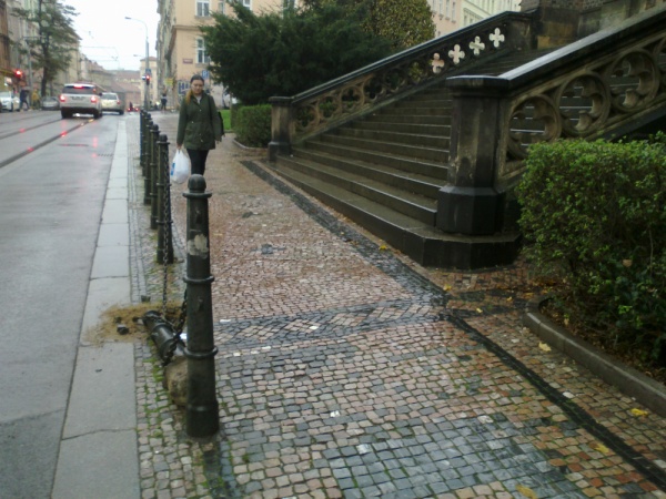 děkujeme za Váš podnět. Vyvrácený sloupek jsme nahlásili na technickou správu komunikací.