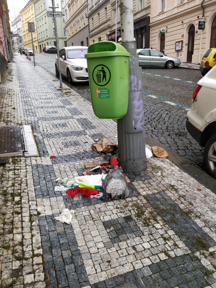 Dobrý den, kolem koše na lampě v ulici Štítného na rohu s Kostnickým náměstím jsou rozházené odpadky.