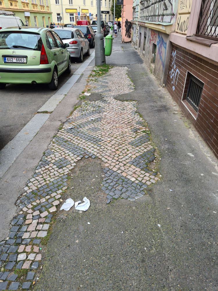 Katastrofální stav chodníků v ulici Bořivojova,zvláště pak úsek mezi ulicemi Chvalova a Čajkovského. Rozbitý chodnik=odpadky=špína, dělejte s tím něco,je to zoufale. V lokalitě stojím 1m2 130000Kc a jsou tu neskutecne zanedbané chodníky.