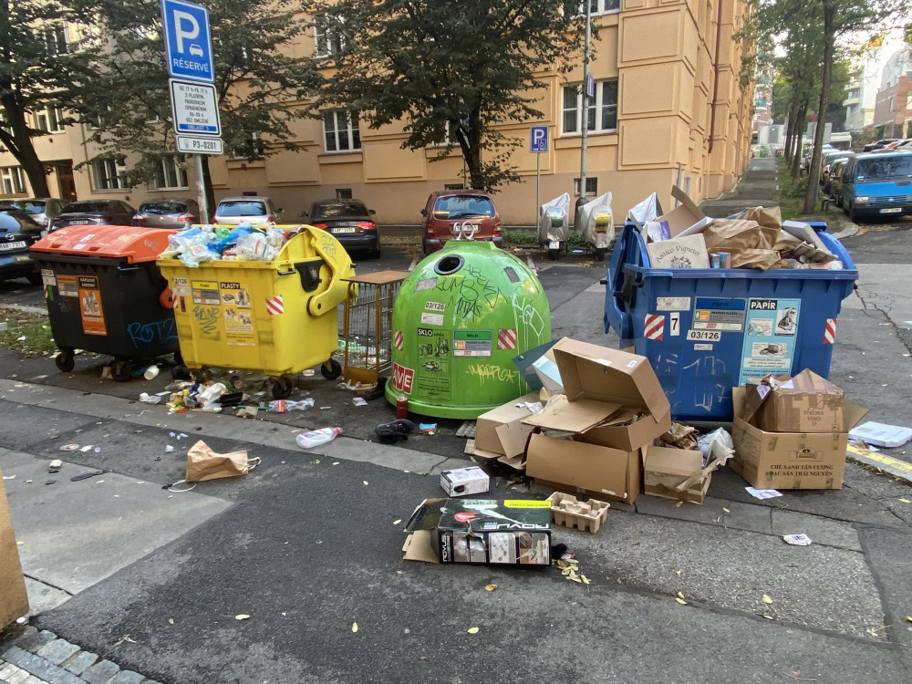 děkujeme za Váš podnět. Kontejnery poklidí a vyveze firma AVE v pravidelném termínu.