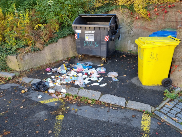 nepořádek u kontejneru