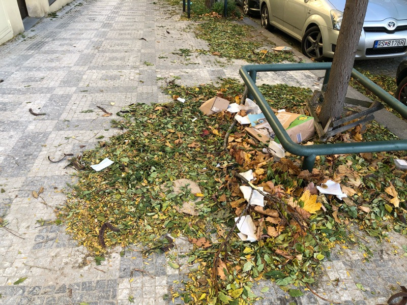 Dobrý den, vítr v posledních dnech roznesl bordel od kontejnerů po celé ulici. Papíry, plasty v kombinaci s listím. Zároveň nám začíná dost ošklivě přerůstat zeleň na pásu podél Jeseniovy.