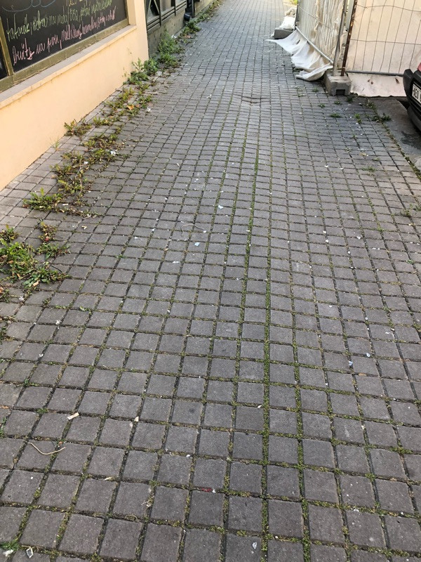 Rozbité sklo na chodníku, šlo by prosím uklidit? Restaurace se o své okolí zrovna nestará..