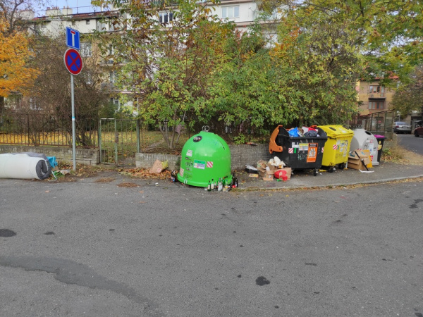 kontejner na papír chybí, na kartony by stačil mnohem menší.