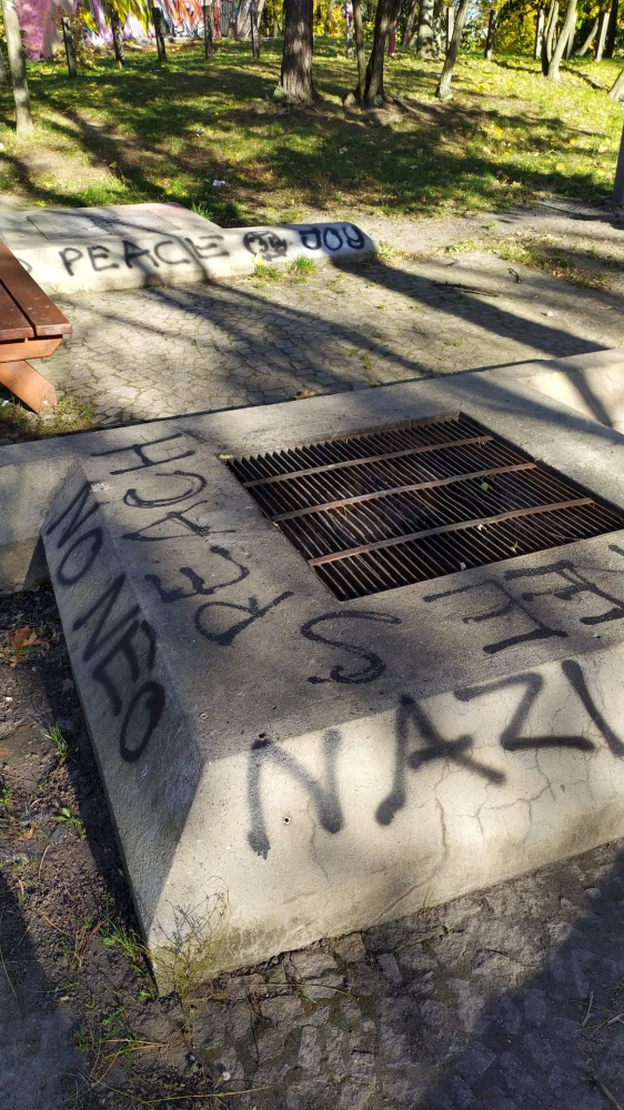 děkujeme za Váš podnět. Předáno k vyčištění na Antigraffitti program