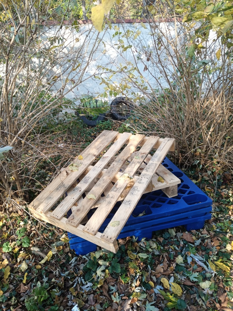palety a pneumatiky v zeleni