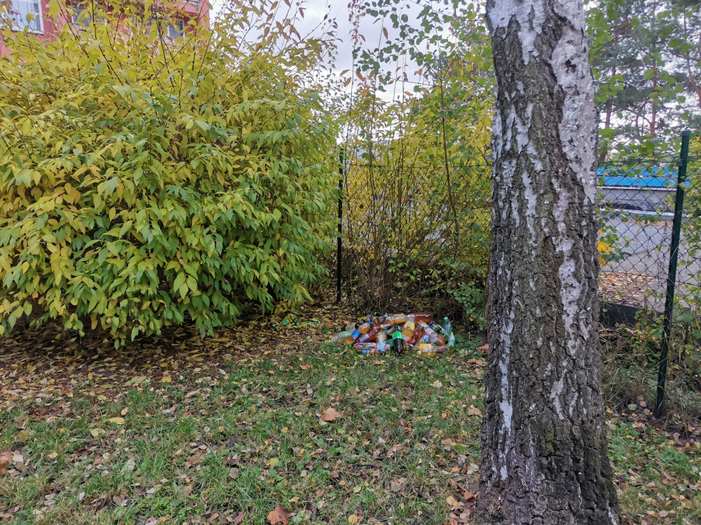 Cerna skladka pouziteho oleje z kuchyne, asi 50 pet lahvi. Umisteno ve krovi vedle vchodu do panelaku. Pritom kontejner na olej je adi 50 metru odsud. Navic k tomu krovi se neda snad ani dojet autem, je to chodnik... Dekujeme. S pozdravem