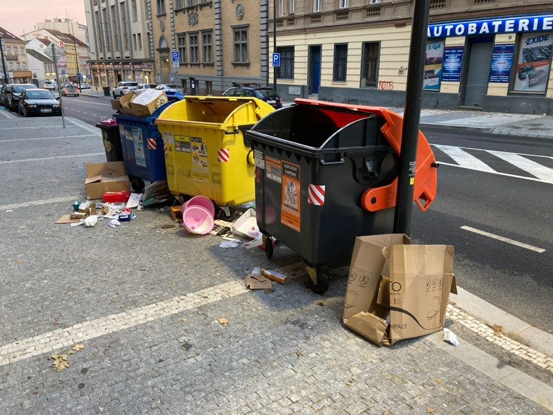 Nepořádek kolem kontejnerů na odpady
