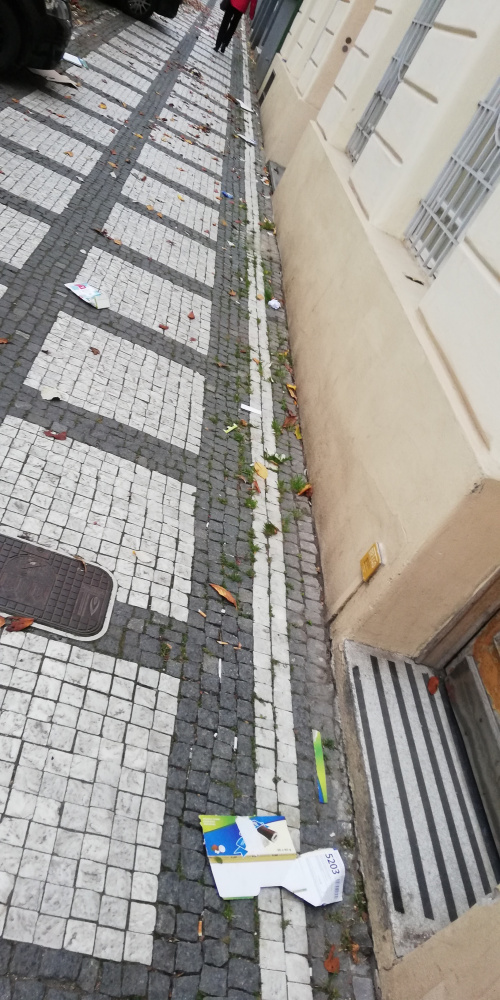Vysypaný odpad, odpadky v ulici