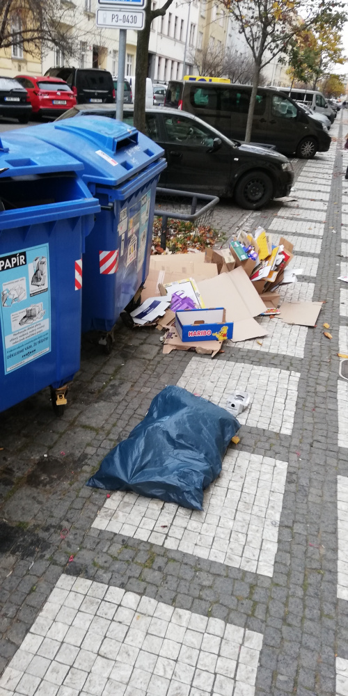 děkujeme za Váš podnět. Předáváme na komplexní úklid chodníku Pražským službám. U popelnic poklidí firma AVE v pravidelném termínu!