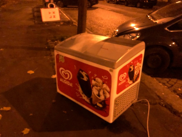 Někdo si spletl ulici se sběrným dvorem a odložil zde mrazák Algida.. děkuji za pomoc!