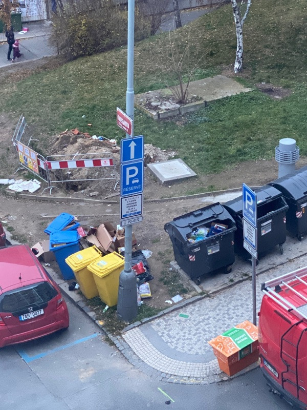 děkujeme za Váš podnět. Nepořádek kolem tříděných nádob uklidí firma AVE při pravidelném svozu odpadu.
