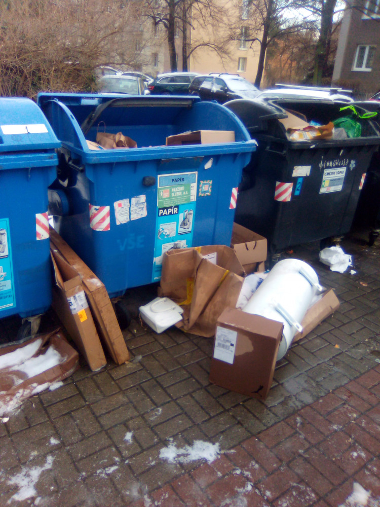 Bojler a papírové krabice.