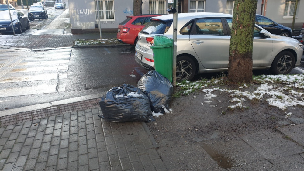 Prosím o odstranění svozového místa na odpad (foto z dnešního dne je první). Toto místo je velmi špatně vybrané. V okolí je mnoho vhodnějších míst (např. roh u potravin na křižovatce Strážní Koněvova atd.). Pokud to nejde změnit zde, prosím o kontakt.