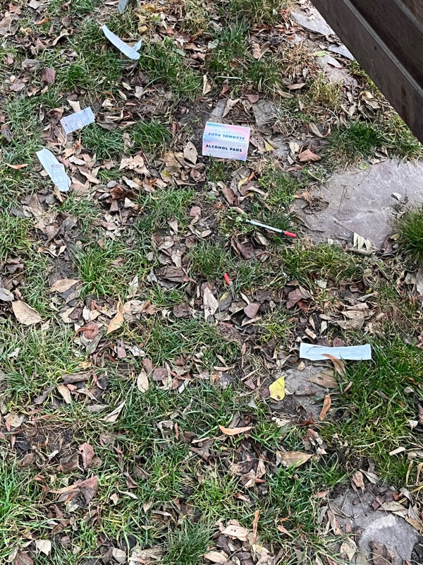 Injekční stříkačka v parku před školou.. za lavičkou v horní části u vstupu do ZŠ