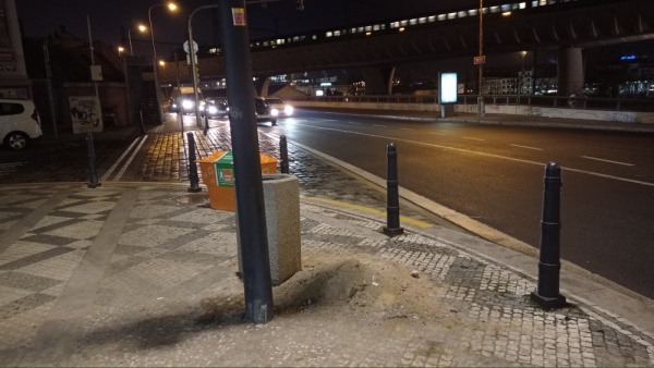 V ulici Koněvova se již delší čas vedle lampy VO číslo 300 360 nachází hromádka písku z nějakého výkopu.