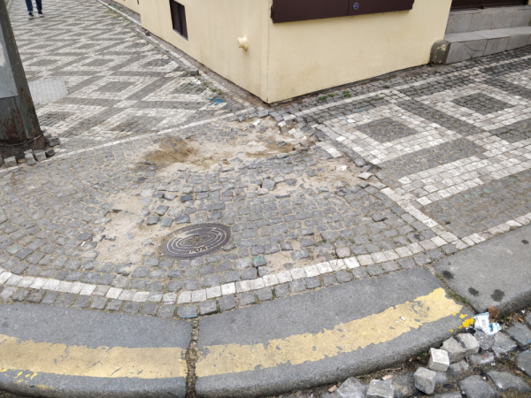 Dobrý den, na rohu ulic Krásova a Husinecká je rozkopaný a špatně opravený chodník. Pouze zasypáno pískem, dlažební kostky ledabyle naházeny všude okolo.