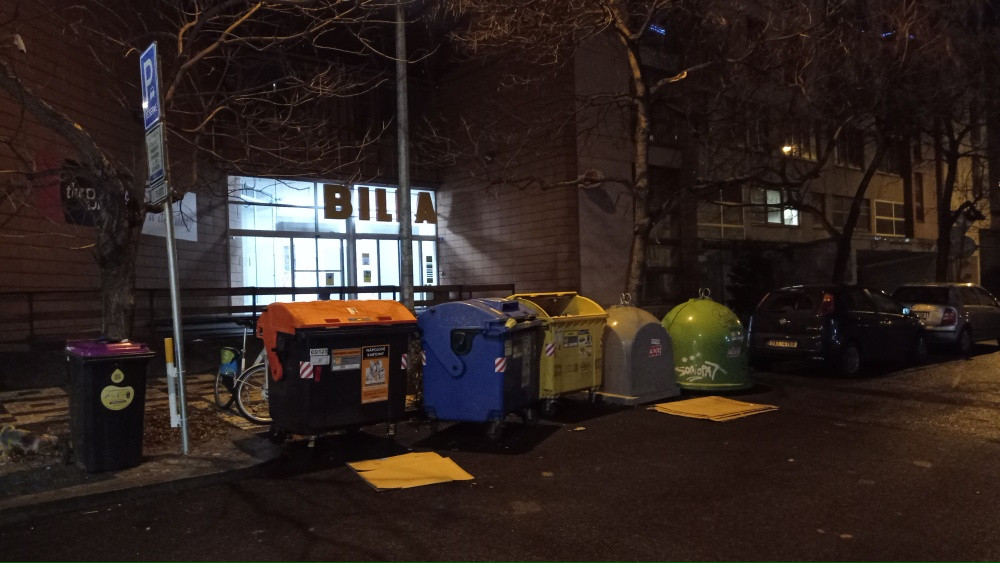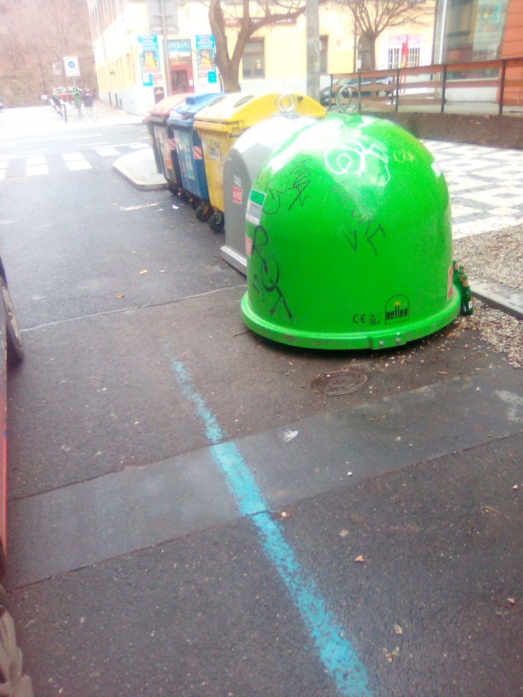 Pohozené kartony u kontejnerů v Lukášově.