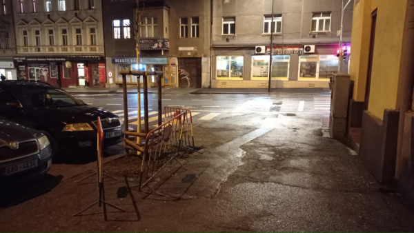 V ulici Černínova se již delší dobu nachází zapomenuté tři kusy přenosného oplocení.